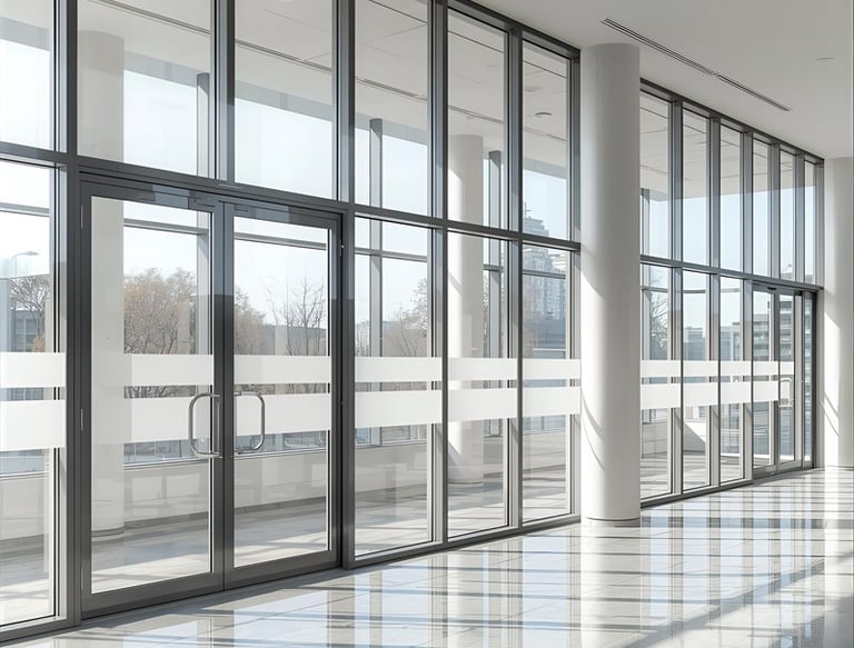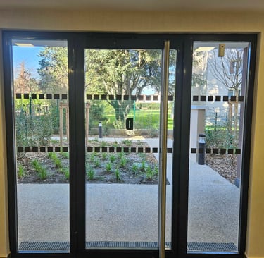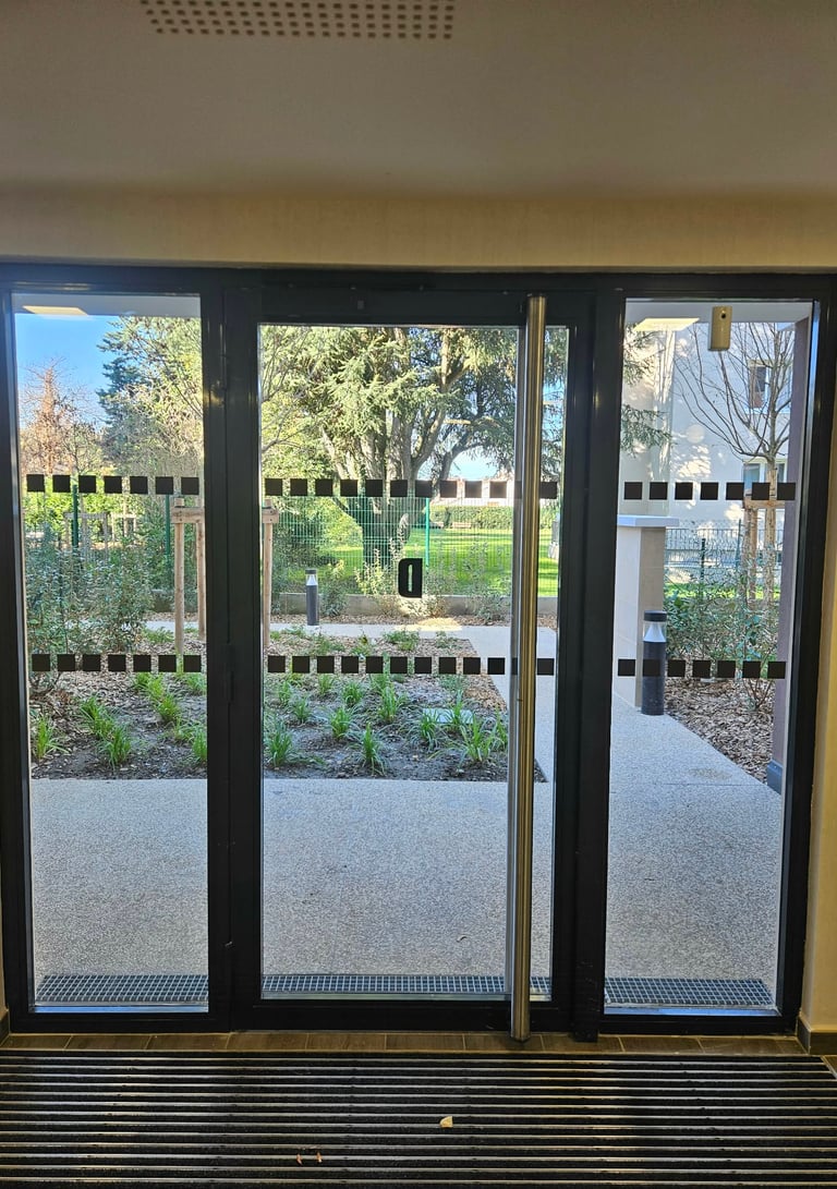 Les bandes de vigilance permettent de rendre les vitrages visibles et de prévenir les collisions dans les ERP et bâtiments professionnels.